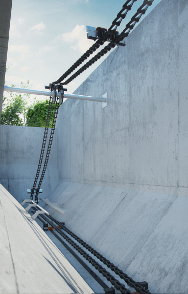 Kedjeskraporna installeras i luftade sandfångsbassänger, direkt efter inloppsgallren på kommunala och industriella avloppsreningsverk.